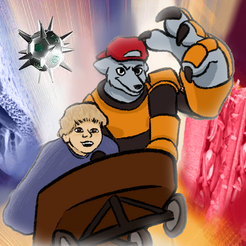SubSoofer! An endless runner where you play as a crab-eating fox that rides a hoverboard through cyberspace. Dodge obstacles as you try to get as far as you can through the tunnel.